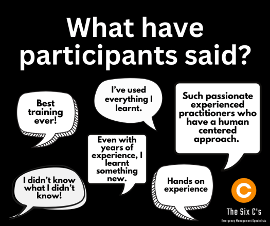 Our training is based on having first-hand emergency management experience in a wide variety of roles with emergency response agencies, local government and industry.