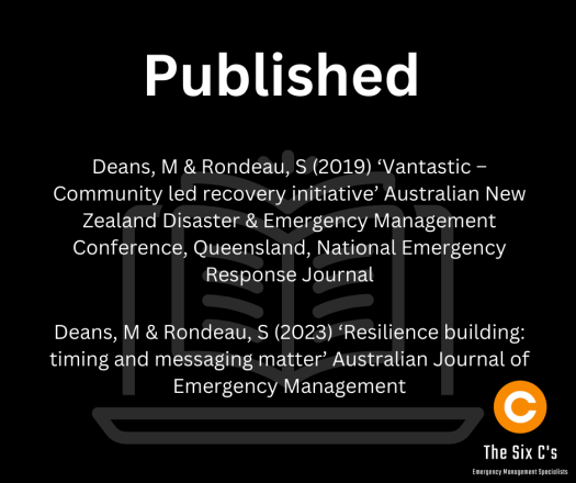 All our training is delivered by Mat and Sue, two emergency management specialists each with over 15 years practical experience with emergency service response agencies and local government. They received a Resilient Australia Award for their innovative recovery strategy, an LGPro Excellence Award for their multi-agency field exercises and an “Excellence in Emergency Communications” Award from EMPA post the South West Fires.